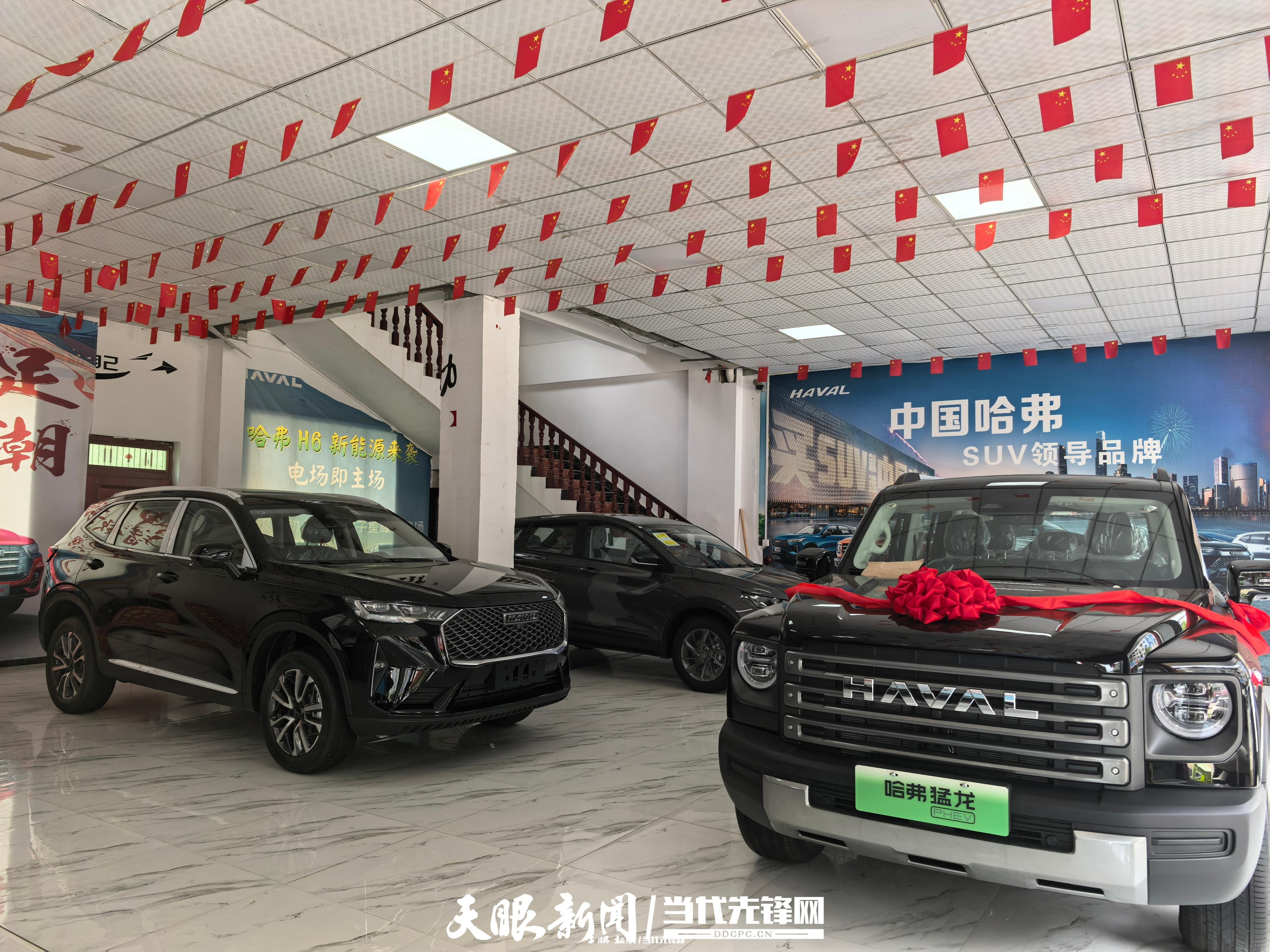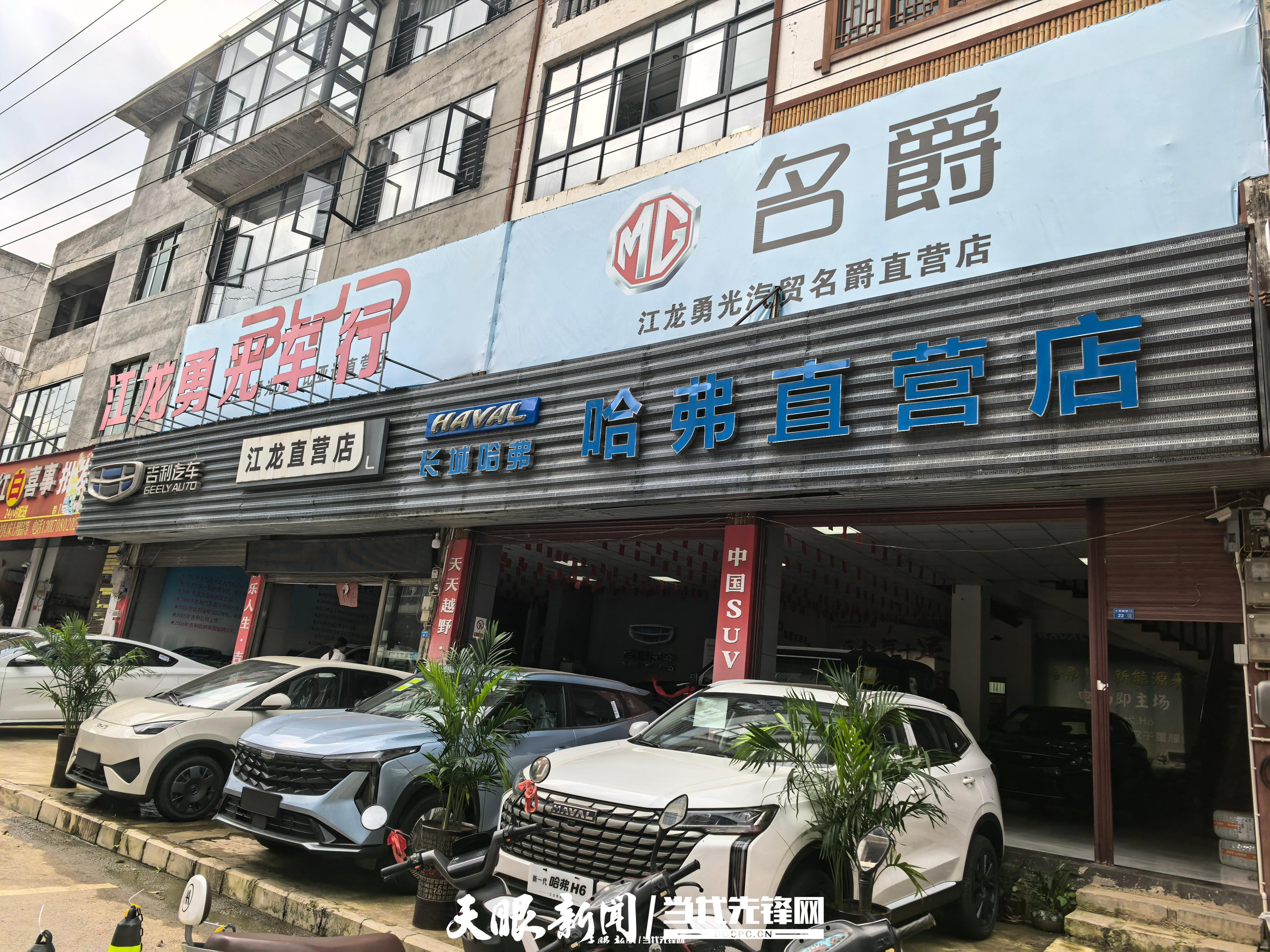 勇光车行共占街道两旁11个店面,哈佛、比亚迪、长安、奇瑞、吉利等品牌新能源汽车一一陈列,吸引了募役镇、本寨镇、革利乡等周边乡镇的客户到此处购车。